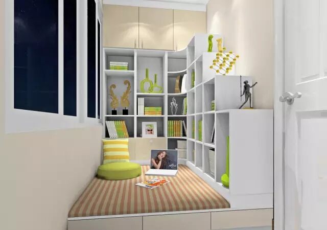 贵港装一网:阳台单单拿来晾衣服实在是太浪费了,利用狭长空间设计一个榻榻米与储物柜的结合体,既能储物又能休闲。